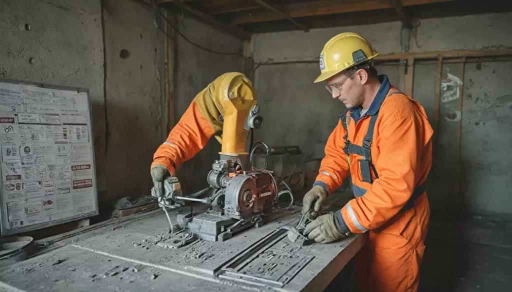 Prace przy frezowaniu betonu generują pył, hałas i drgania — dlatego kluczowe jest stosowanie adekwatnych środków ochrony. Należy zapewnić aparatury oddechowe (maseczki/respiratory), ochronę słuchu oraz rękawice antywibracyjne dla operatorów. Dodatkowo, wskazane jest stosowanie osłon, systemów odciągu pyłu i nawilżania, aby ograniczyć emisję drobnego pyłu.